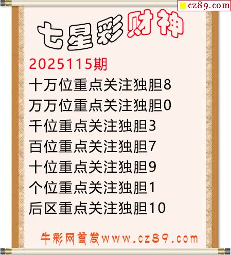 首页 > 七星彩预测 > 七星彩2025年115期财神独胆图迷